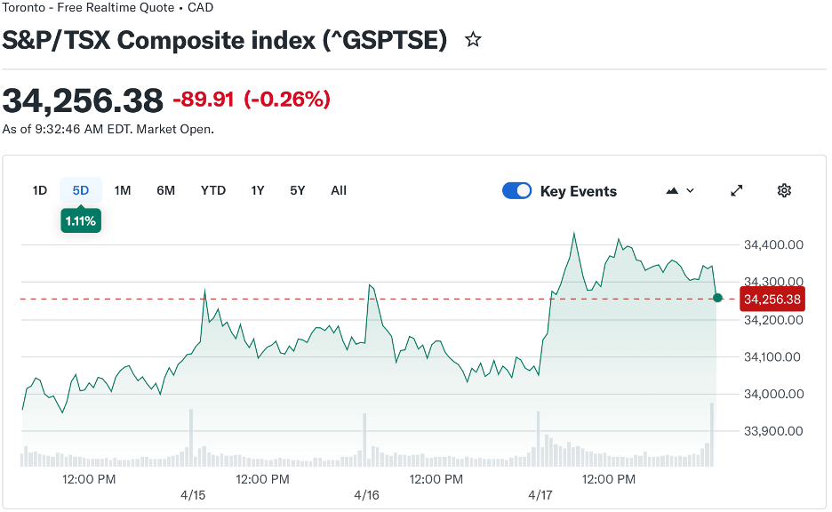 Last week, the S&P/TSX Composite Index extended its upward trend, briefly approaching or testing the 34,000 level, near its historical high. The index has now posted four consecutive weeks of gains, rebounding approximately 7%–8% from its March low, reflecting strong market resilience.