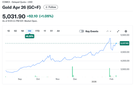 Gold prices remained elevated, ending the week at US$4,951.20, while silver closed at US$76.735. Gold and silver experienced notable volatility during the week, with prices retreating from recent highs and silver seeing sharp moves as margin requirements were raised in futures markets.