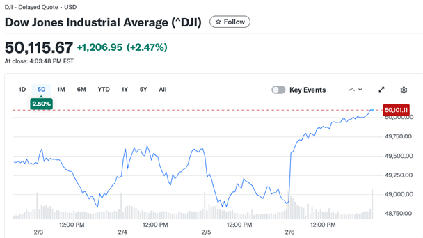 U.S. equities delivered mixed performance over the week. The Dow Jones Industrial Average rose 2.50% to 50,115.67, while the S&P 500 declined 0.10% to 6,932.27 and the Nasdaq Composite fell 1.84% to 23,031.21.