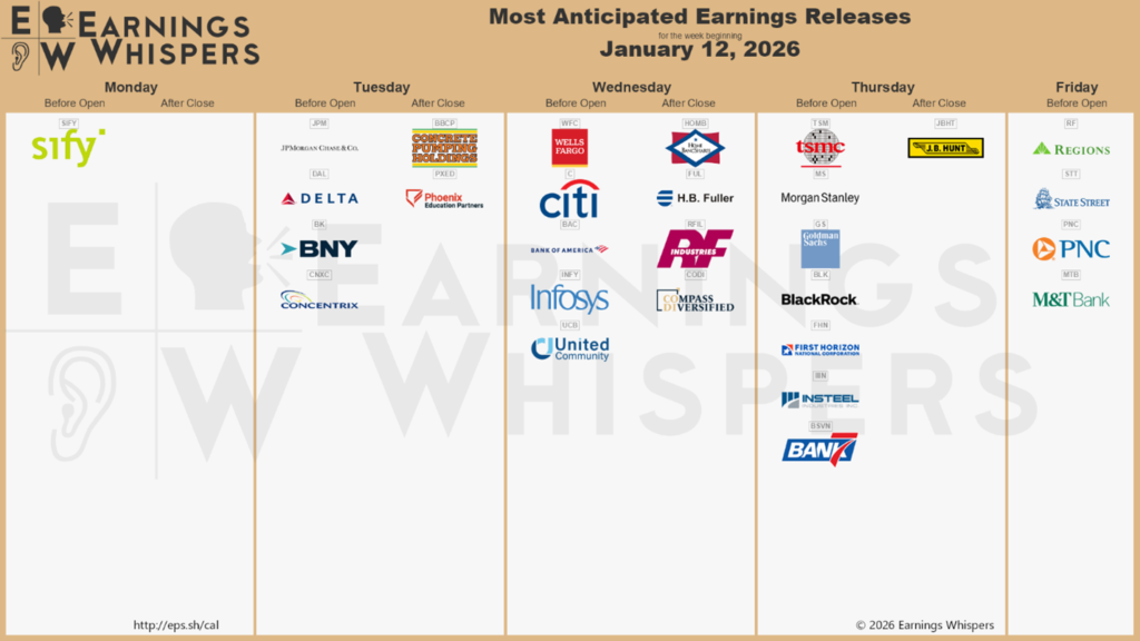 随着1月13日当周交易的开始,市场关注点将集中在第四季度财报季的正式启动,以及一系列即将公布的重要经济数据,这些因素将对通胀和利率预期产生重要影响。